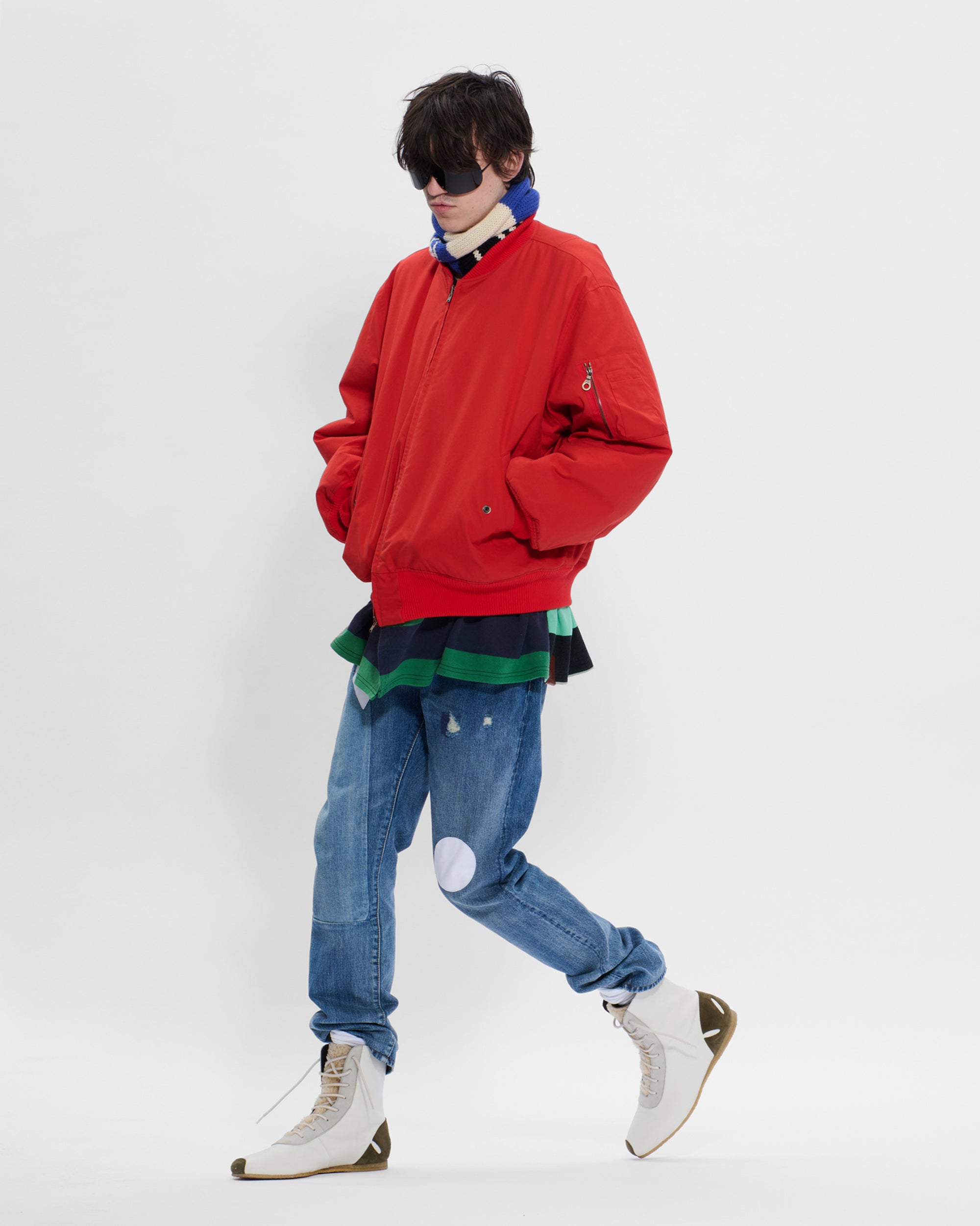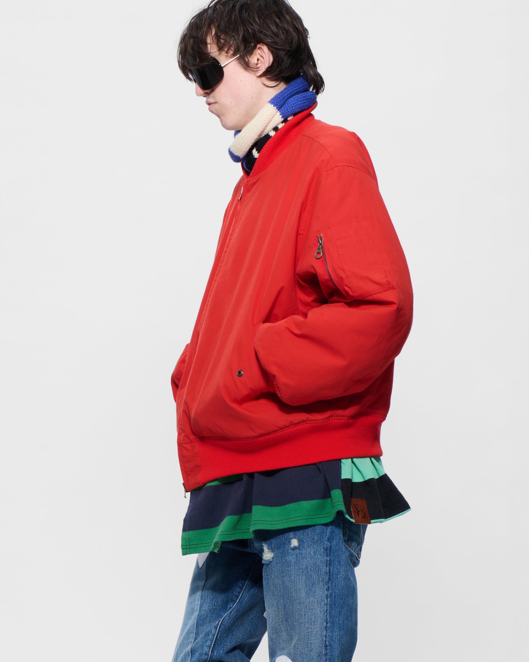MA-1 BOMBER JACKET IN RED WITH VINTAGE RUGBY SKIRT